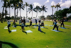 way through a series of integrated exercises and stretches that