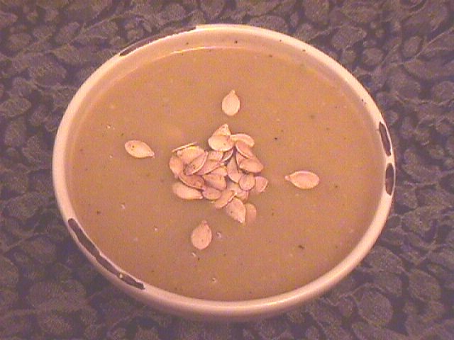mixture in a blender. Add squash and enough broth to blend.