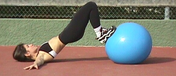 Lie on the floor, arms to the sides heels on the ball. Feet are