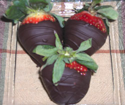 off. Squeezing gently, drizzle chocolate over the strawberries