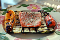 Put salmon on tin foil, skin side down and sprinkle lightly