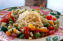 Parmesean Spaghetti with Chopped Veggie Salad~