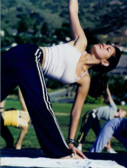 in Triangle Pose (Click here