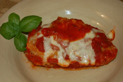 oven, spoon marinara sauce over chicken. Sprinkle chicken