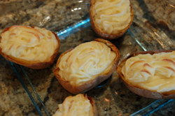 slice potatoes in half lengthwise and scoop out center.